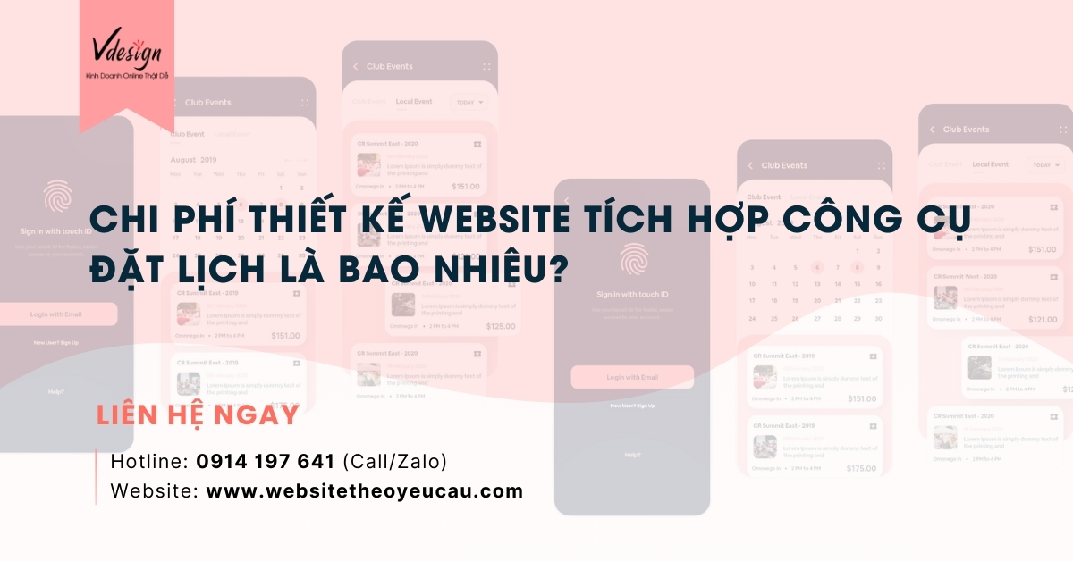 Ở VDesign chi phí thiết kế website tích hợp công cụ đặt lịch dao động từ 4,5 triệu đến 9 triệu đối với website cơ bản đến website chuyên nghiệp cần yêu cầu riêng.