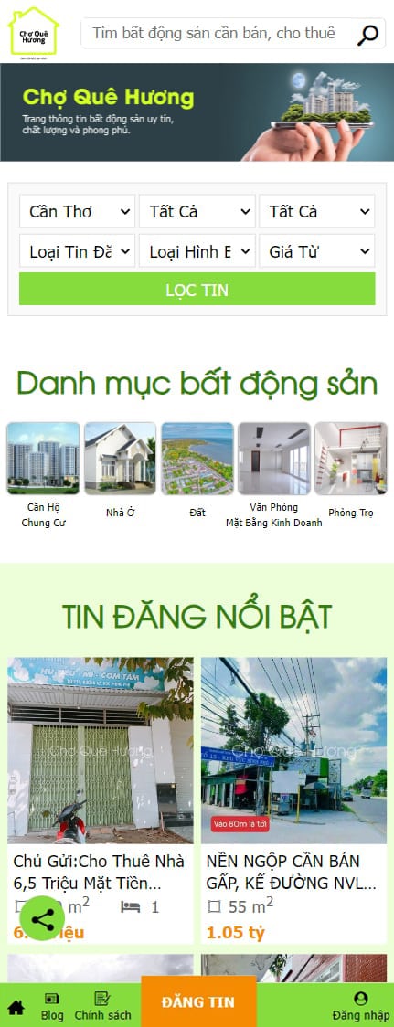Website bất động sản Chợ Quê Hương - Kênh thông tin bất động sản Uy Tín tại Cần Thơ